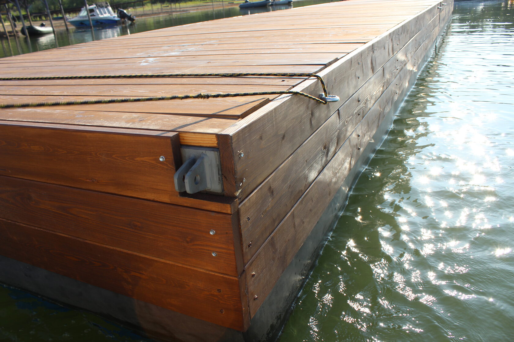Каркасы изготовлены из оцинкованной стали, каркас не контактирует с водой, что гарантирует долговечность и надежность изделий. Понтоны могут быть оснащены стальными элементами « лыжами» для защиты контактной зоны плавучего элемента понтона. Это означает, что понтону не страшно оказаться на суше и при необходимости можно перетащить по грунту без риска повреждения. В качестве модулей плавучести мы используем бочки объемом 220 литров изготовленные из полиэтилена низкого давления методом выдувного формирования, с гарантированной толщиной стенки и стабильными размерами. Для настила мы используем лиственницу, согласны, что это не самый бюджетный вариант. Но удовольствие от дешевой покупки проходит очень быстро, а высококачественное будет радовать очень долго. Расчетный срок службы более 20 лет. Понтоны не нуждаются в регистрации в ГИМС и Минэкологии.